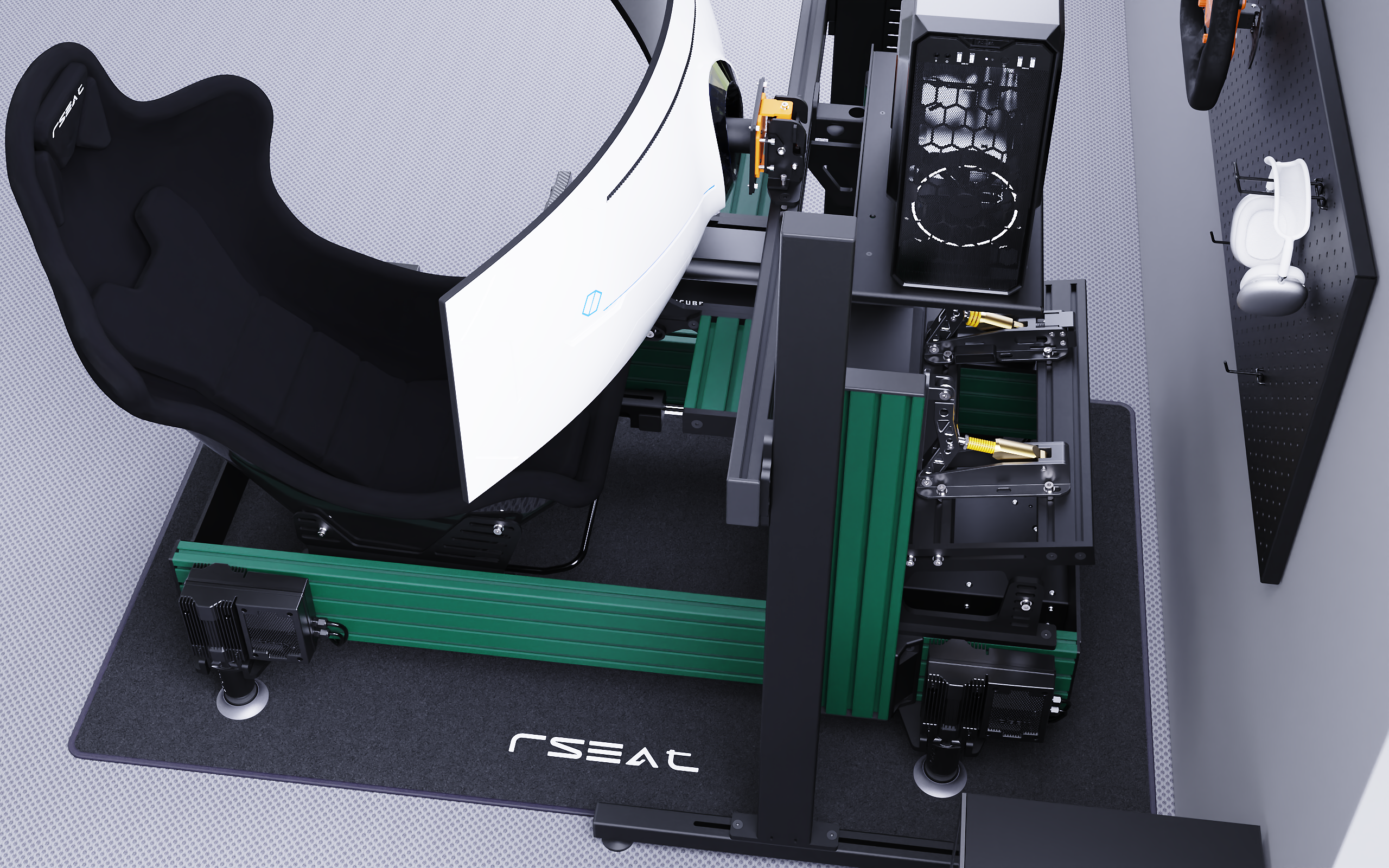 RSEAT A1 PRO Formula chassis Is designed to work with your existing or future gear. Mount any pedals as a direct bolt-on. We provide all tools and fasteners to attach and adjust the angle/position of your pedals. L-brackets for pedals with bottom mount support such as the Fanatec pedals are provided.