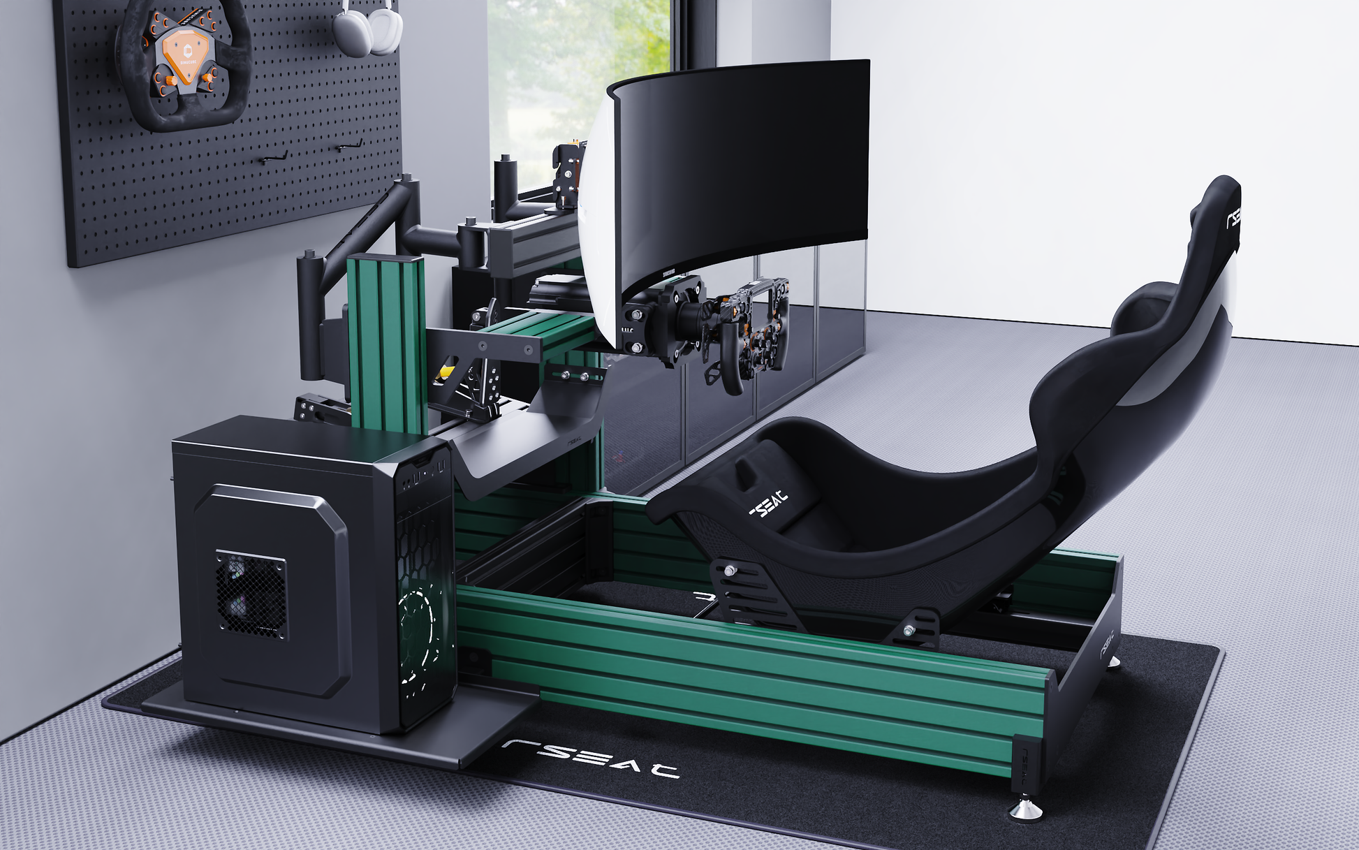 The A1 PRO GT is a universal cockpit that allows you to race in a standard seating position. A1 PRO Formula seat is tilted back nearly 30-35 degrees, meaning that the pedal box is higher than your hips. The specific seating position applies to all open-wheel race cars and LMP1 series. If you are looking for a universal rig that will work for any race, go with A1 PRO GT; for dedicated fans of Formula races, choose the A1 PRO Formula cockpit. Another difference is how users get in and out of the cockpit, whereas the A1 PRO GT chassis has a clear advantage due to the standard seating position.