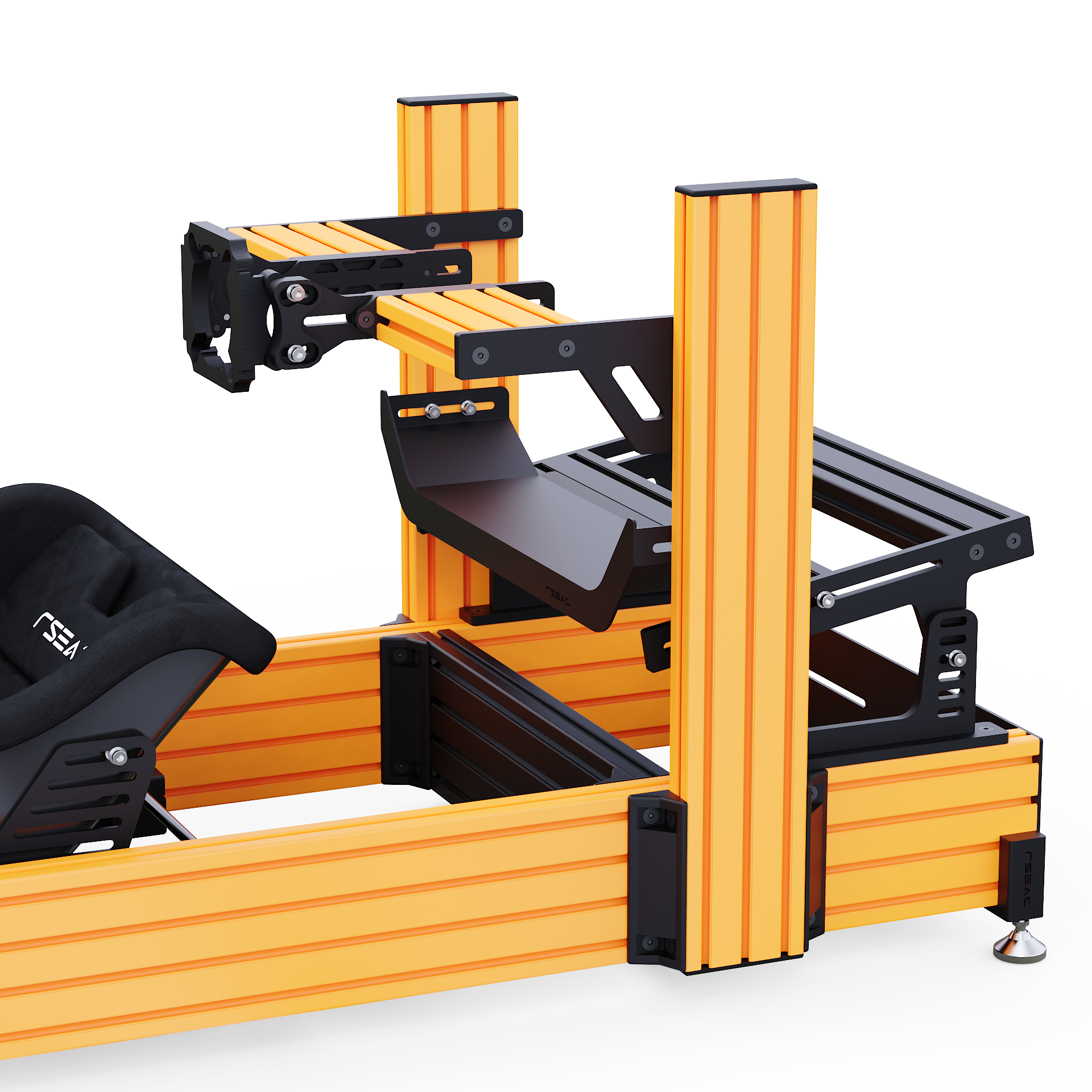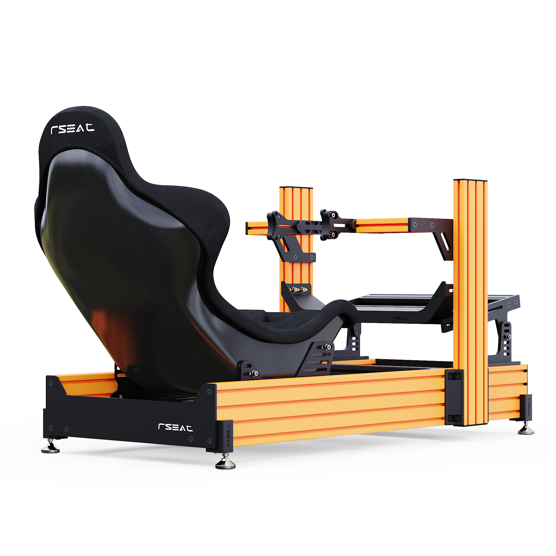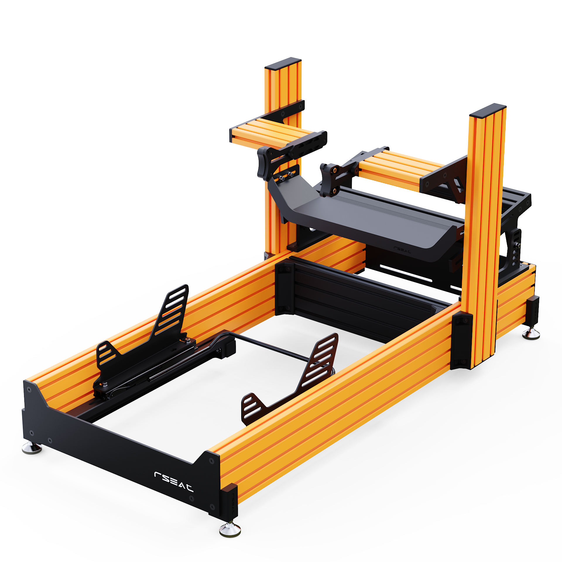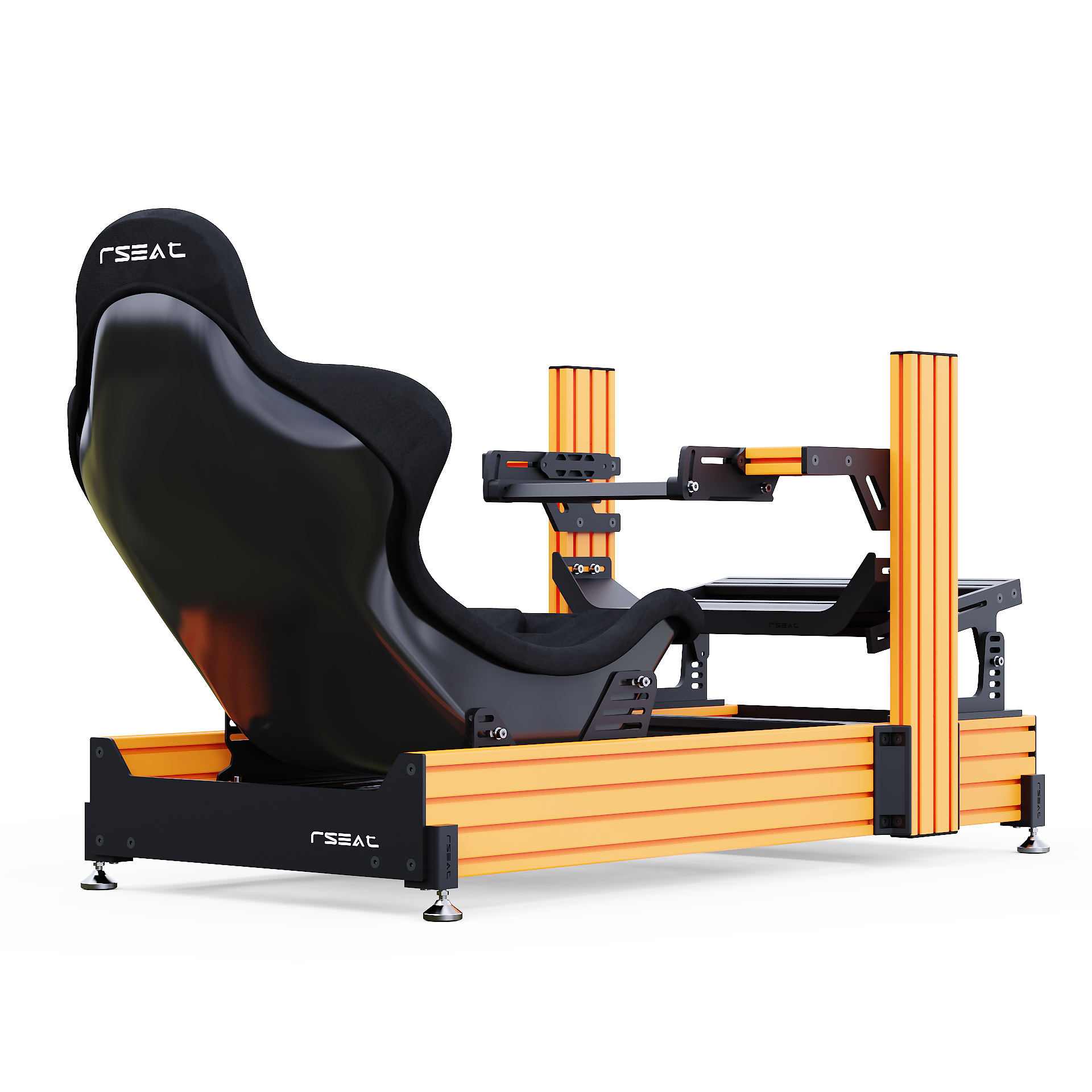 RSEAT A1 PRO Formula chassis Is designed to work with your existing or future gear. Mount any pedals as a direct bolt-on. We provide all tools and fasteners to attach and adjust the angle/position of your pedals. L-brackets for pedals with bottom mount support such as the Fanatec pedals are provided.
