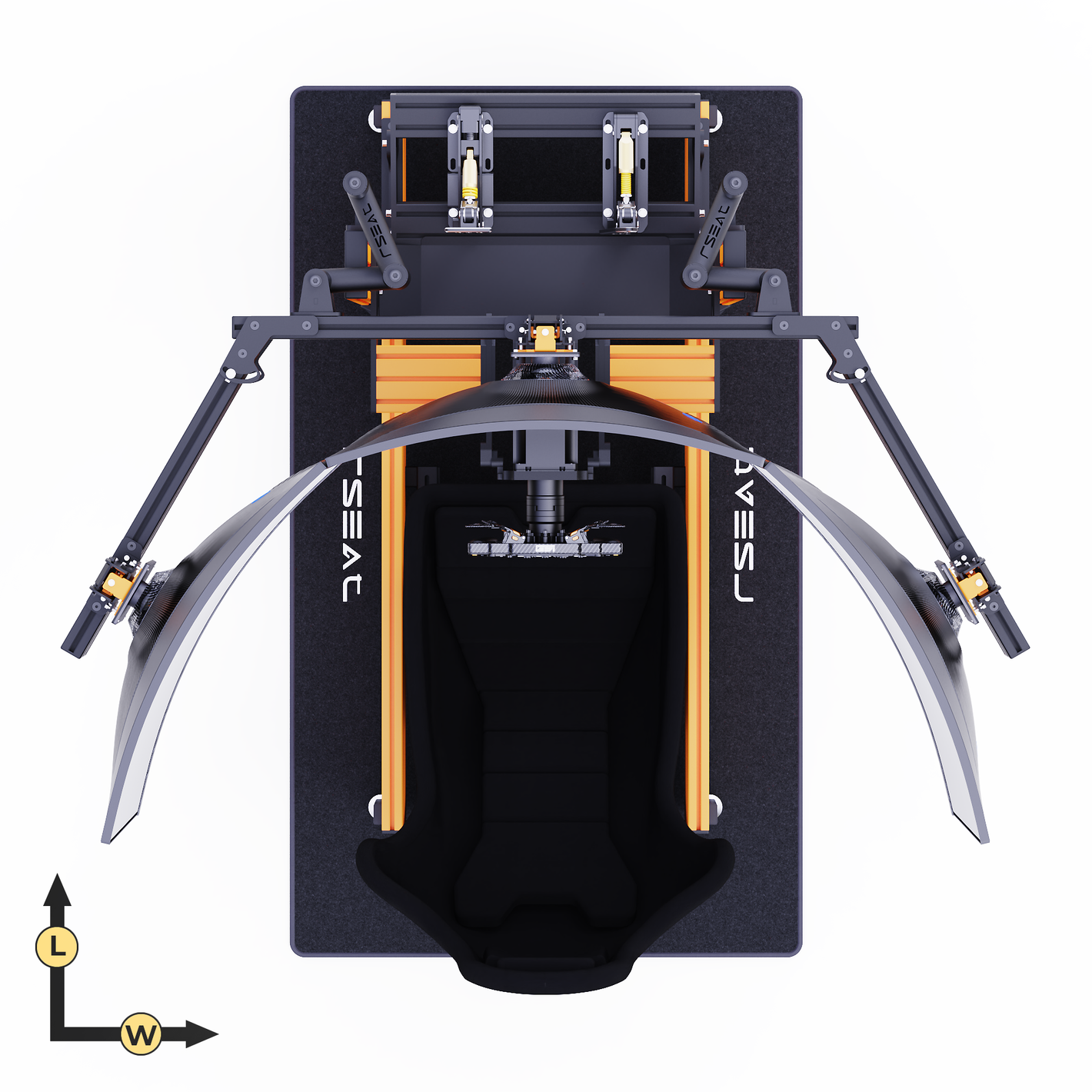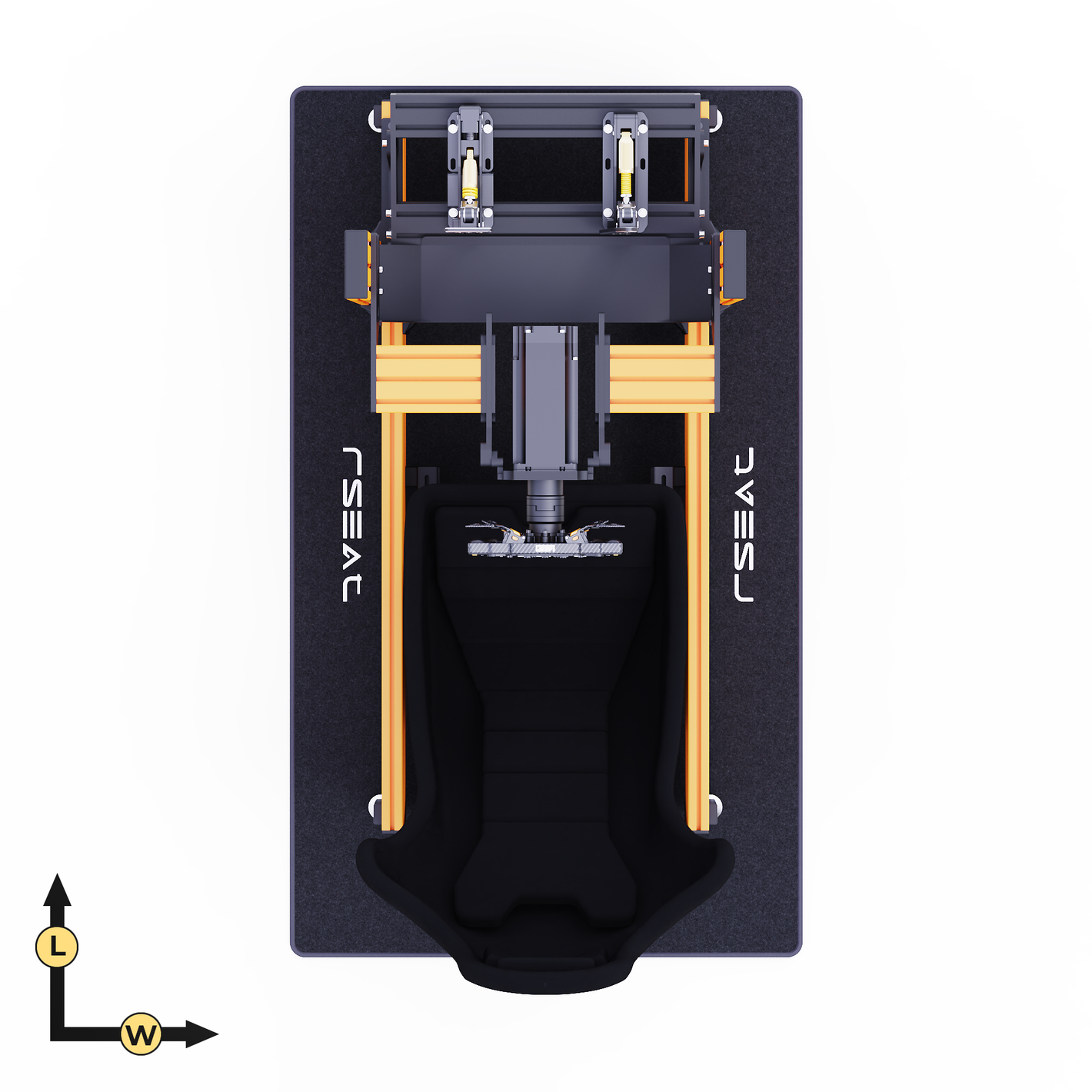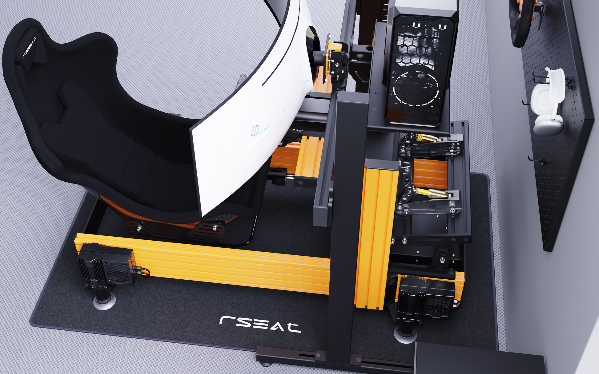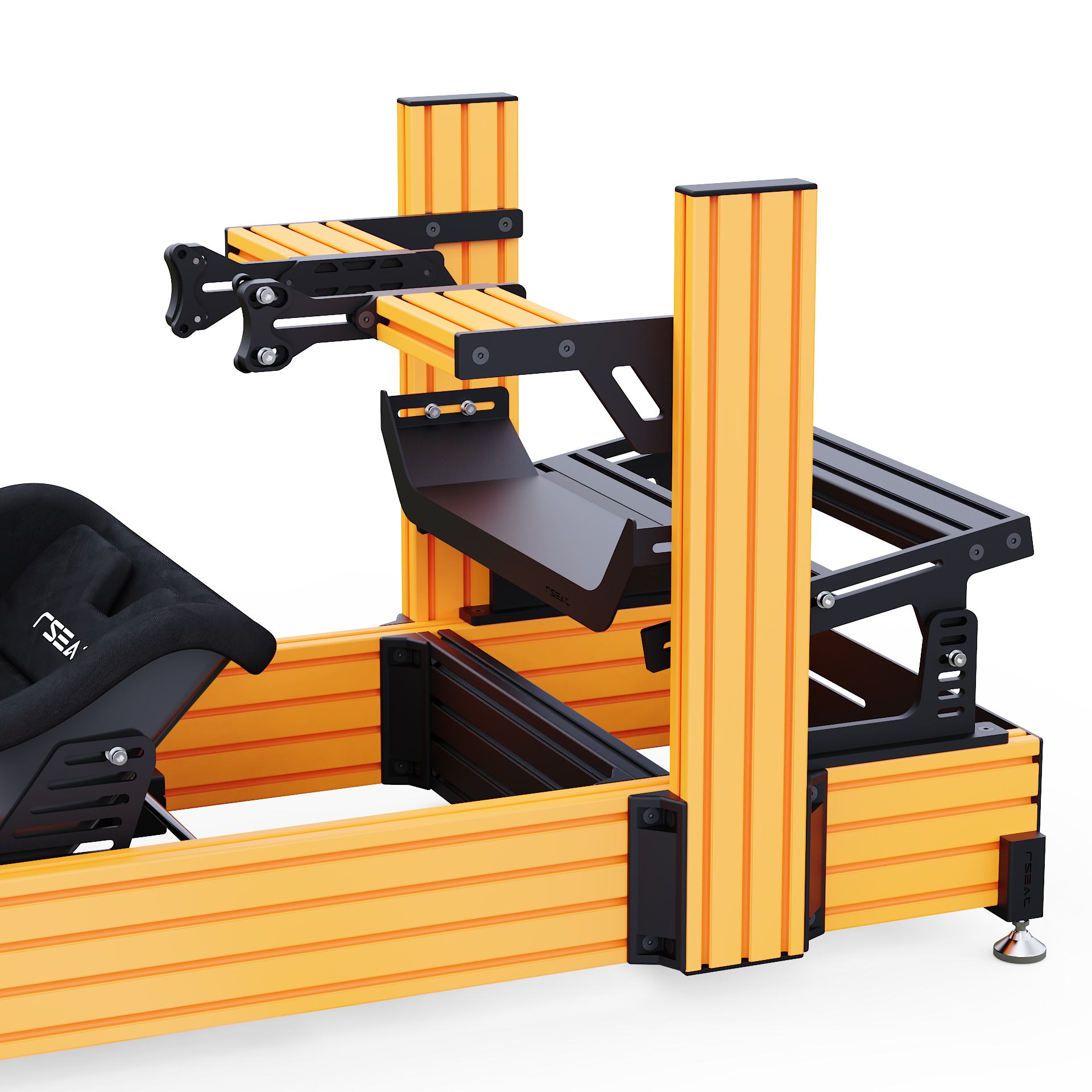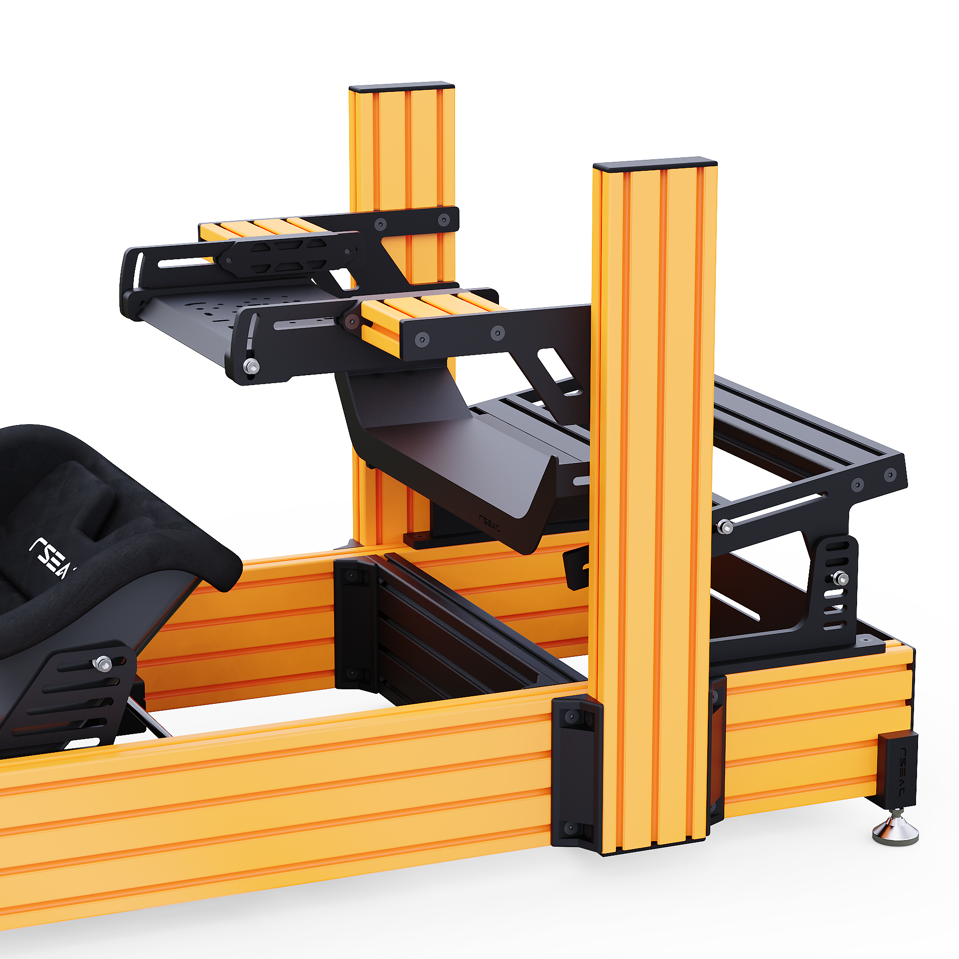 RSEAT A1 PRO Formula chassis Is designed to work with your existing or future gear. Mount any pedals as a direct bolt-on. We provide all tools and fasteners to attach and adjust the angle/position of your pedals. L-brackets for pedals with bottom mount support such as the Fanatec pedals are provided.