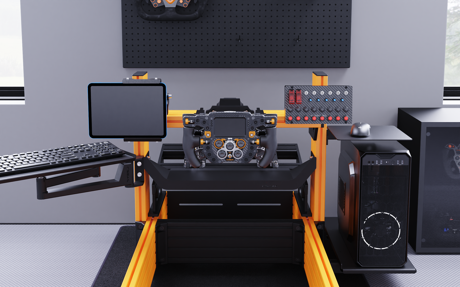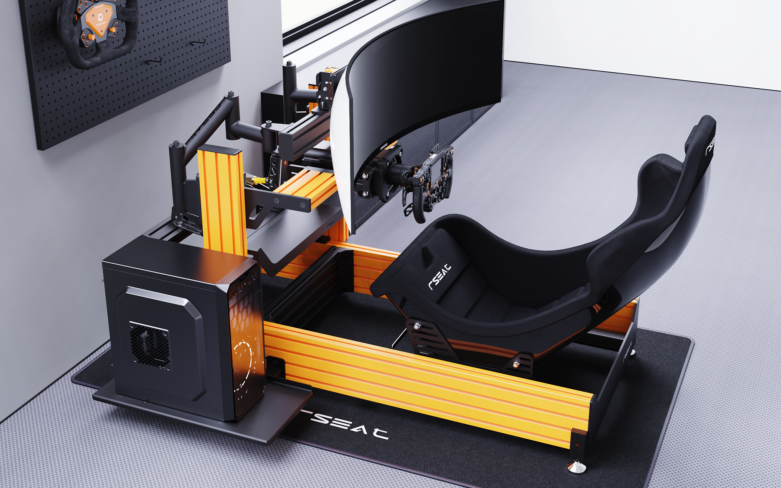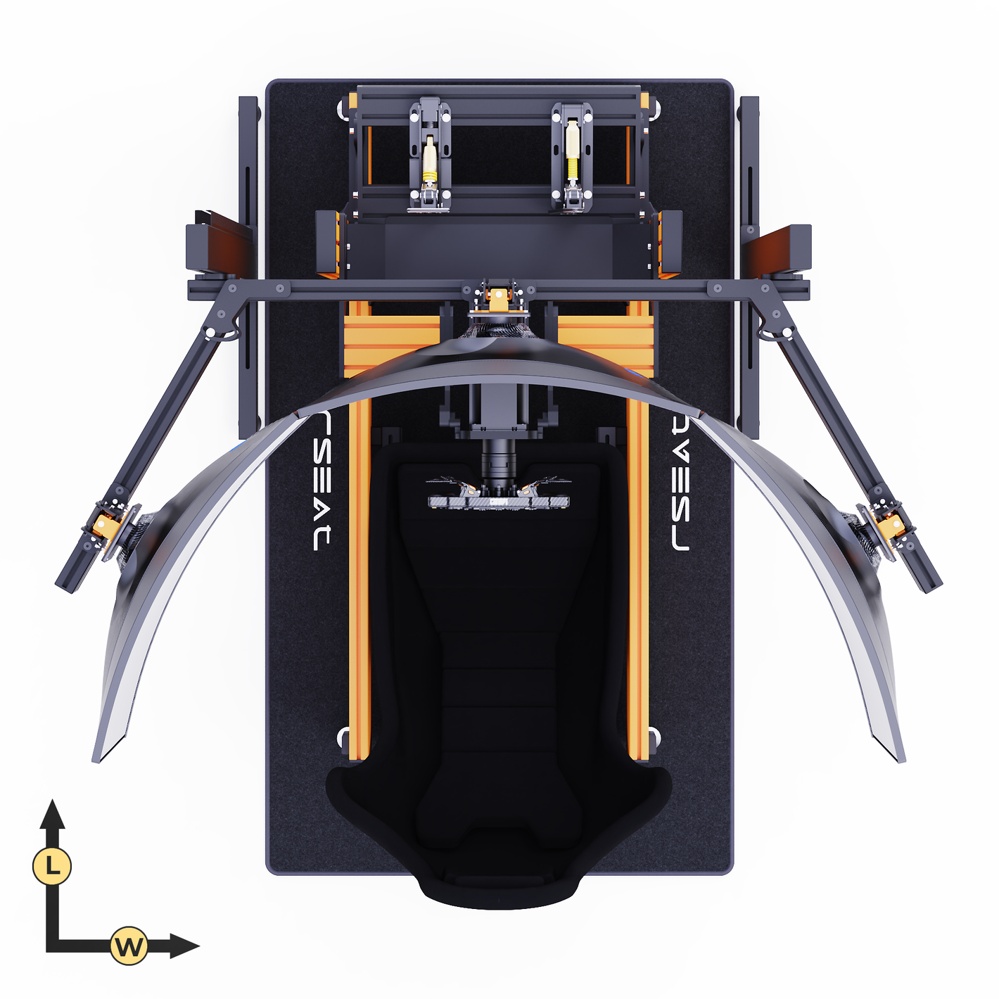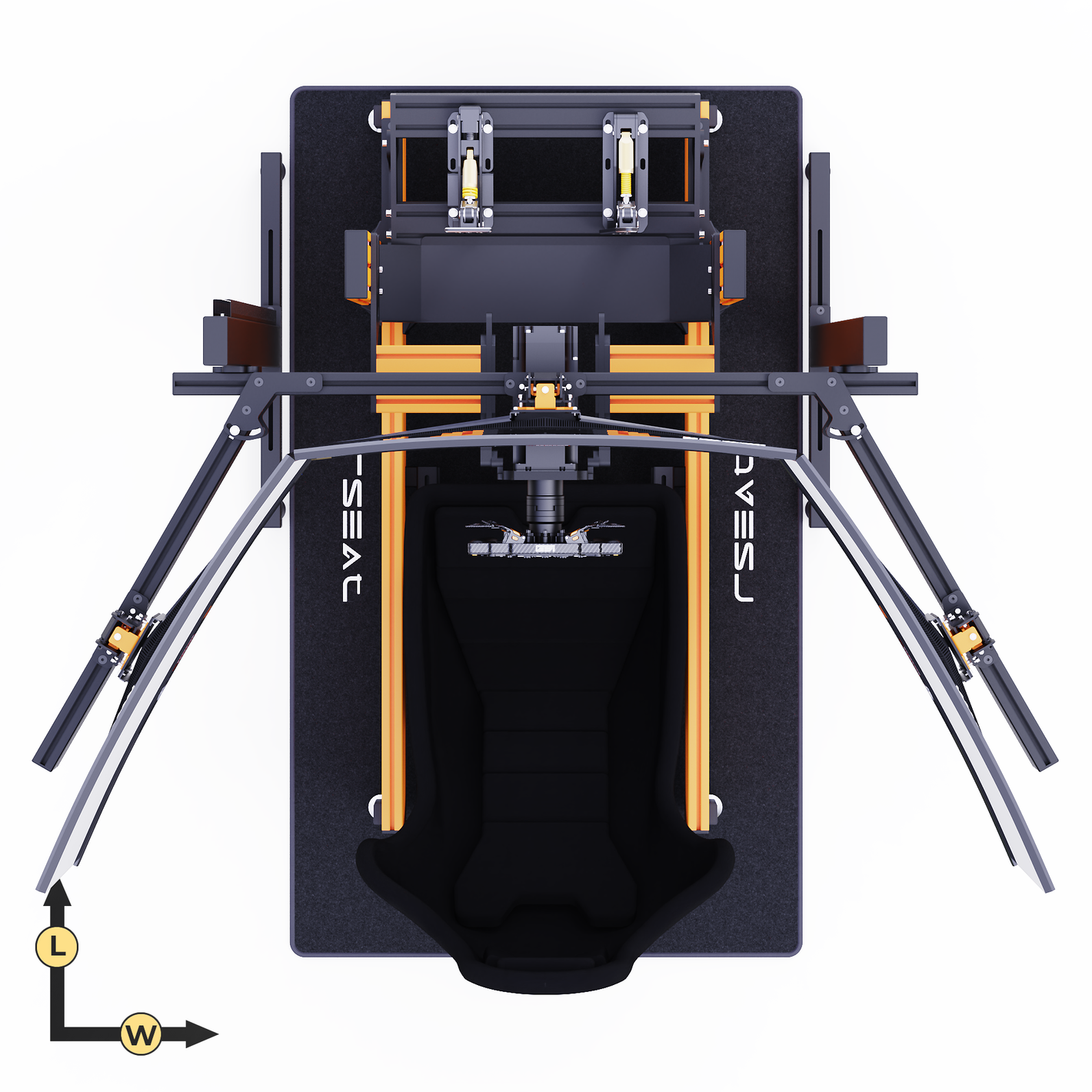RSEAT A1 PRO Formula chassis Is designed to work with your existing or future gear. Mount any pedals as a direct bolt-on. We provide all tools and fasteners to attach and adjust the angle/position of your pedals. L-brackets for pedals with bottom mount support such as the Fanatec pedals are provided.