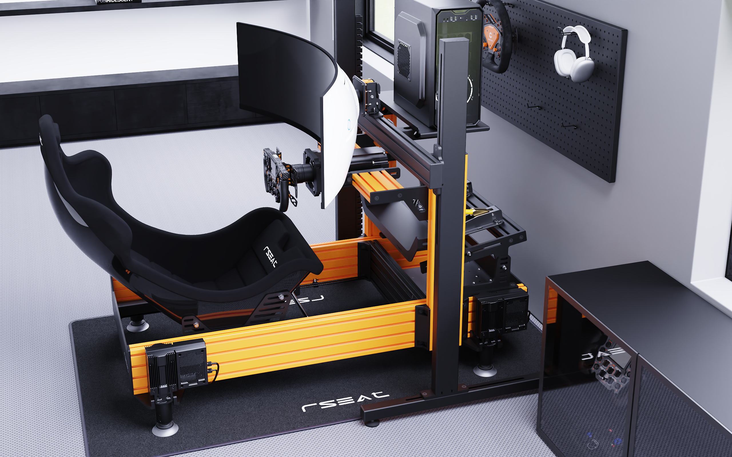 RSEAT A1 PRO Formula chassis Is top-of- the-line sim racing cockpit designed and built to fulfill the requirements of any sim racer novice or pro. With our 14+ years of experience, we provide a smart-engineered and ready-to-go setup that will serve you for decades. A dedicated wheelbase mount option is available to mount any wheelbase, current or future. The pedals tray is designed to fit any pedals available on the market. For comfort, we include seat sliders (rails) with each chassis. Ultimate stability, rigidity, quality, and looks are guaranteed. The all-new A1 PRO Formula chassis comes 95% pre-assembled from the factory in one big box. Easy 5-10 min assembly required! A service is only available here.