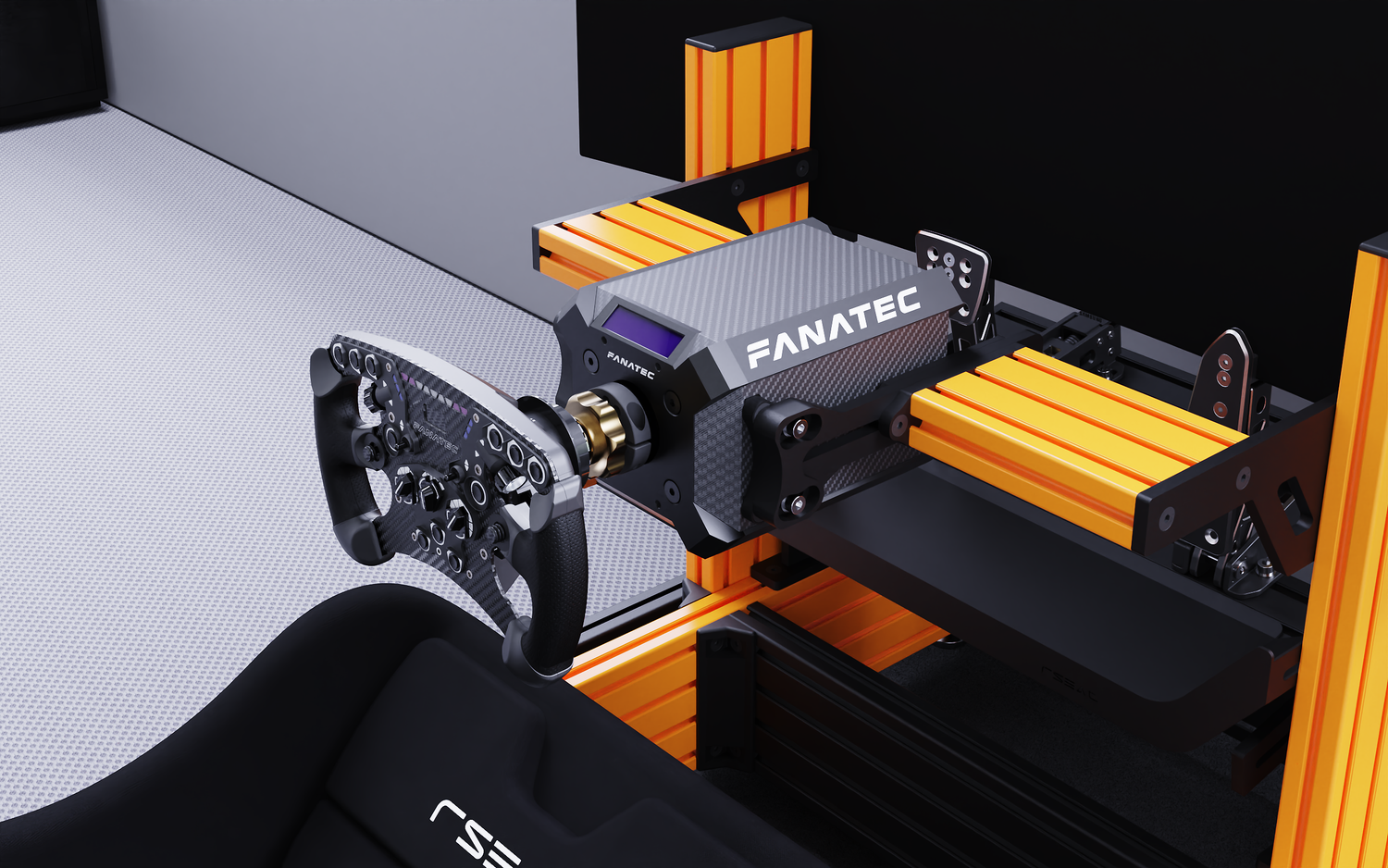Yes, we offer dedicated wheelbase mount support, including front mount, Fanatec side mount, and bottom mount support, in the desired color as a separate kit.