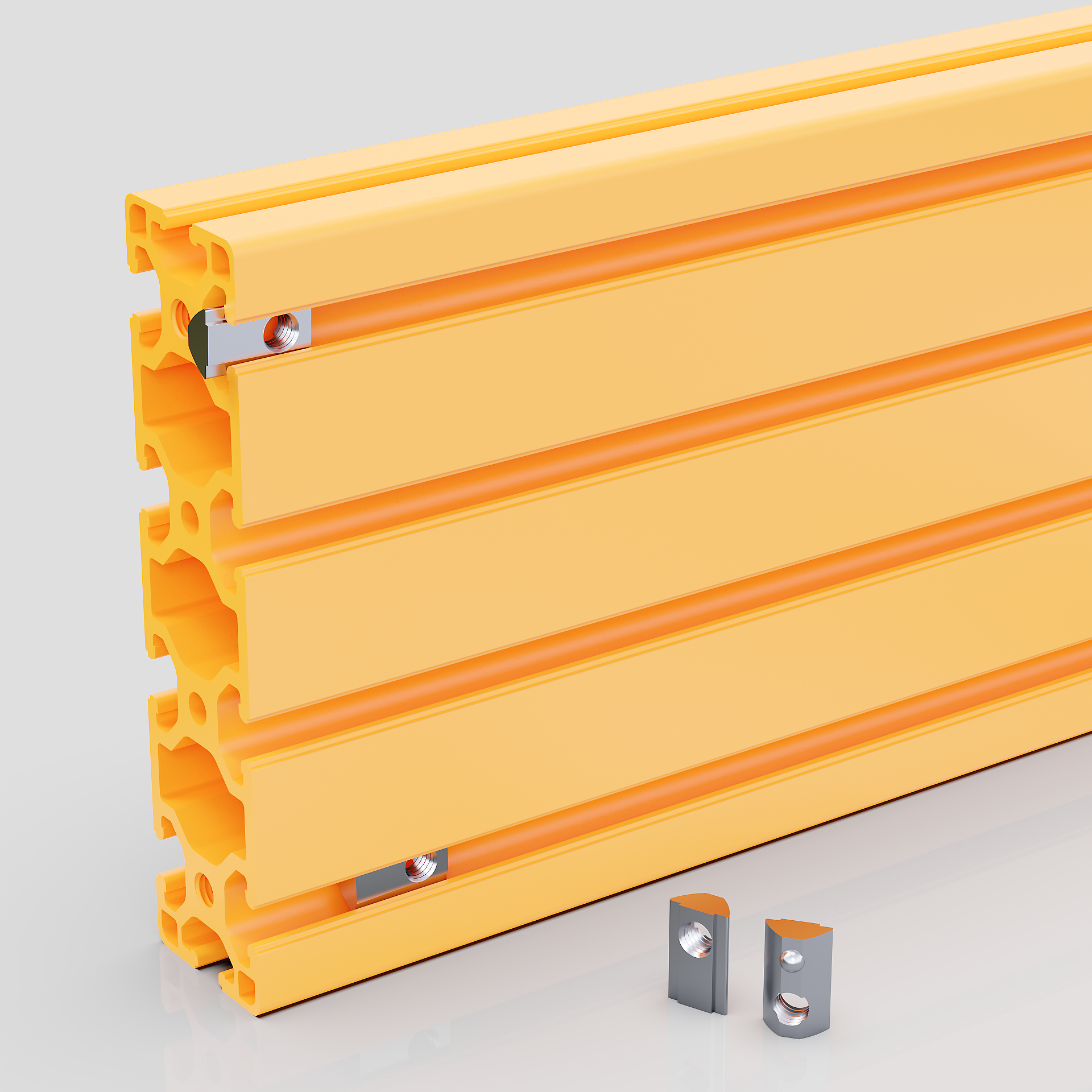 • High-quality Ball Spring T-Nuts included. The most easy to install and adjust T-Nuts are provided with each chassis. The self-aligning roll-in T-Nut is a fastening option that loads either from the profile ends or side, which is helpful where the ends are inaccessible.
