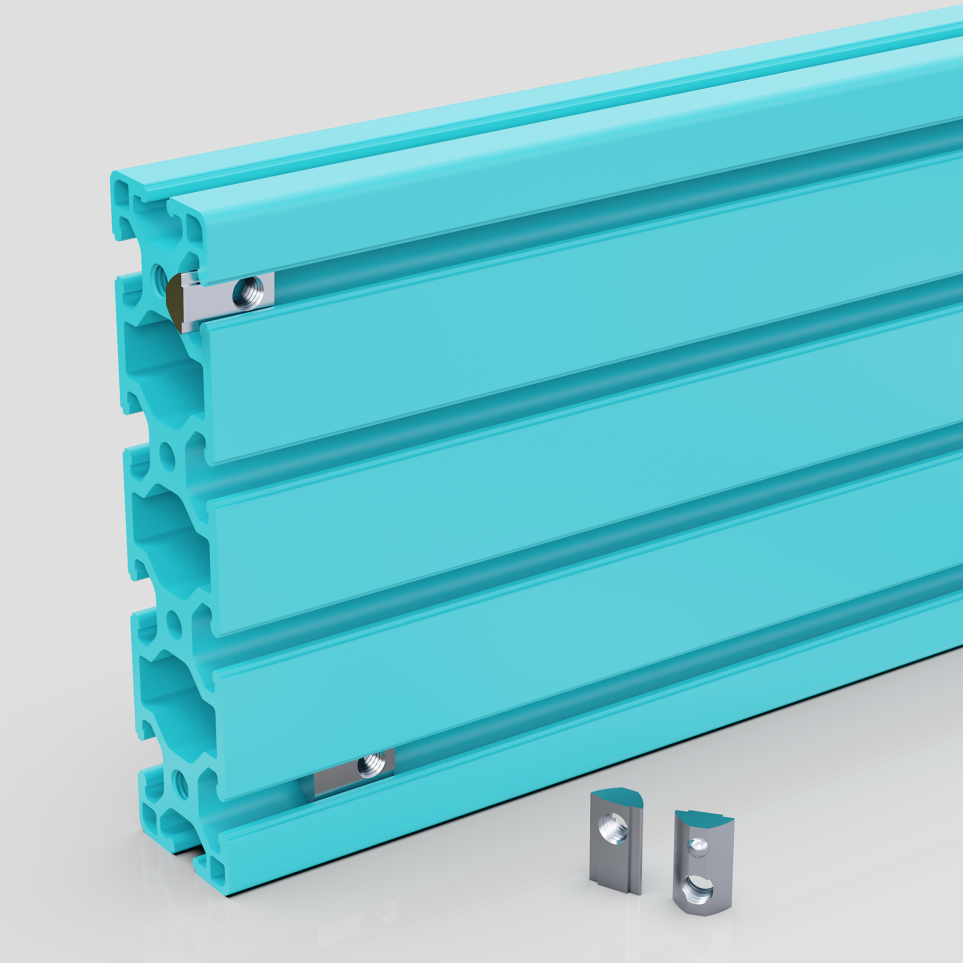 • High-quality Ball Spring T-Nuts included. The most easy to install and adjust T-Nuts are provided with each chassis. The self-aligning roll-in T-Nut is a fastening option that loads either from the profile ends or side, which is helpful where the ends are inaccessible.