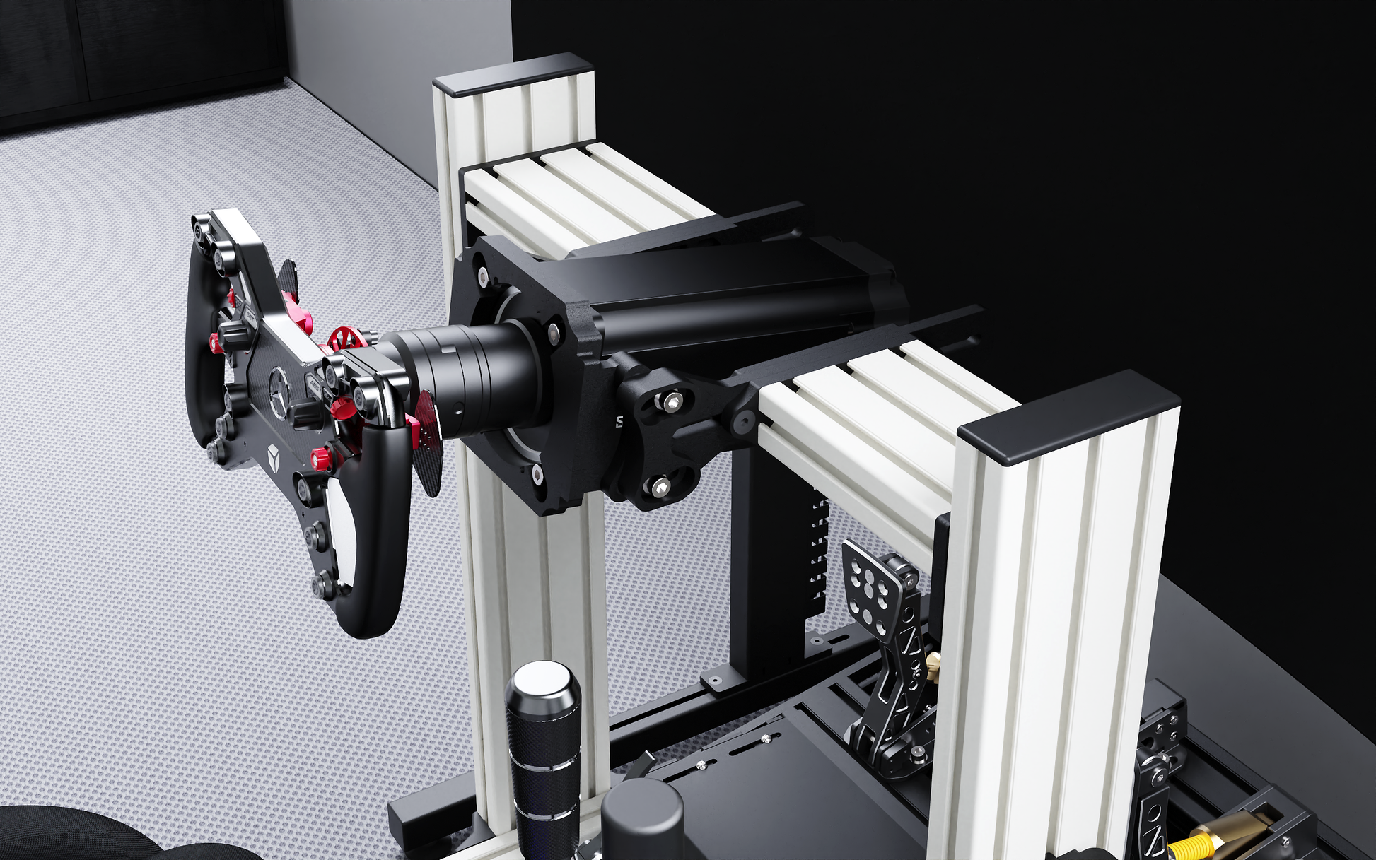 Bottom Mount Wheelbase Support is the most universal solution, and it works with any wheelbase on the market. Our new, unique design provides ultimate stability and linear, tilt, and height adjustment in seconds. Supported mounting is Pre-drilled for most wheelbases as a direct bolt-on (pre-drilled form the wheelbase manufacturer specifications) or using the provided brackets that come with the wheelbase. Supported fasteners are M6 and M7.