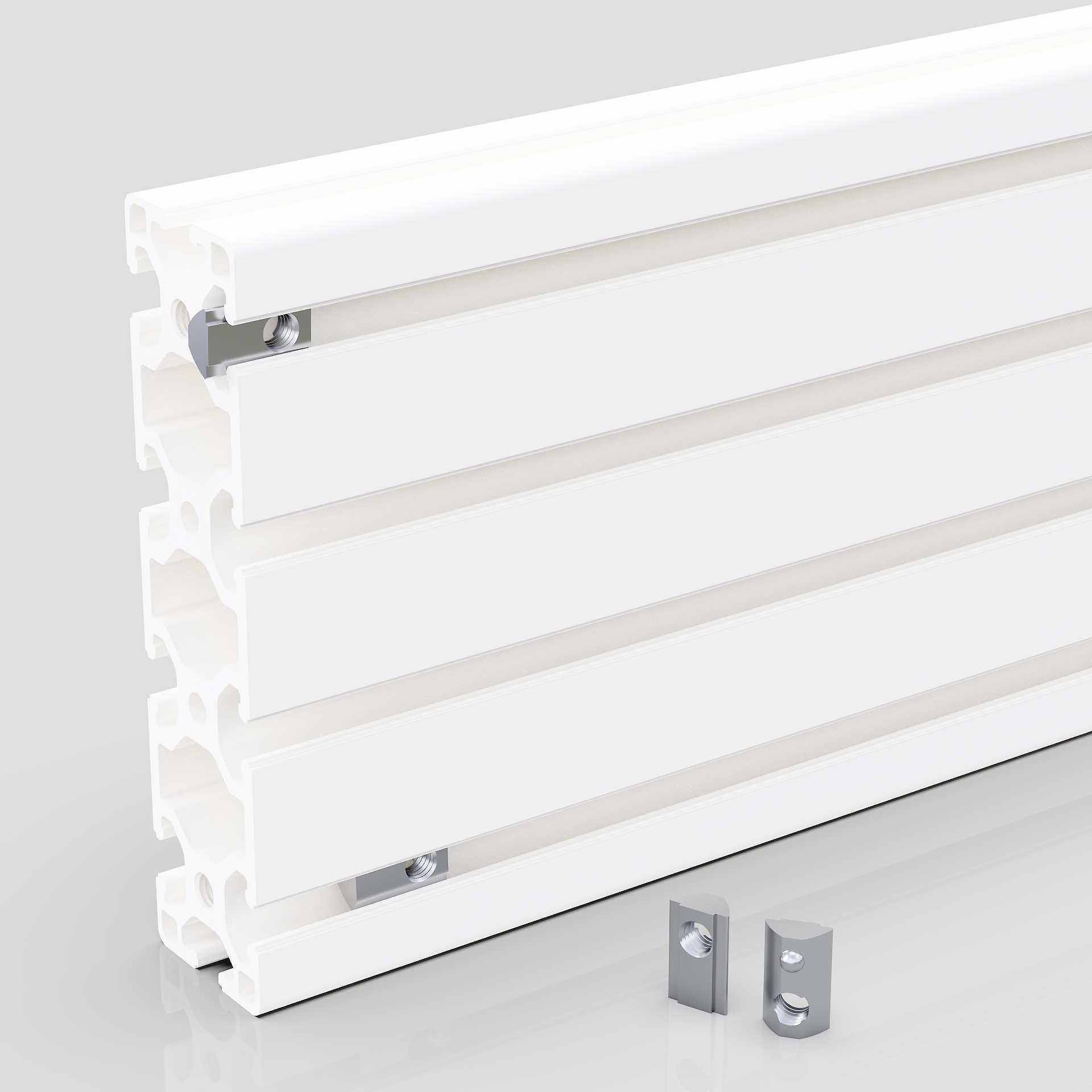 • High-quality Ball Spring T-Nuts included. The most easy to install and adjust T-Nuts are provided with each chassis. The self-aligning roll-in T-Nut is a fastening option that loads either from the profile ends or side, which is helpful where the ends are inaccessible.