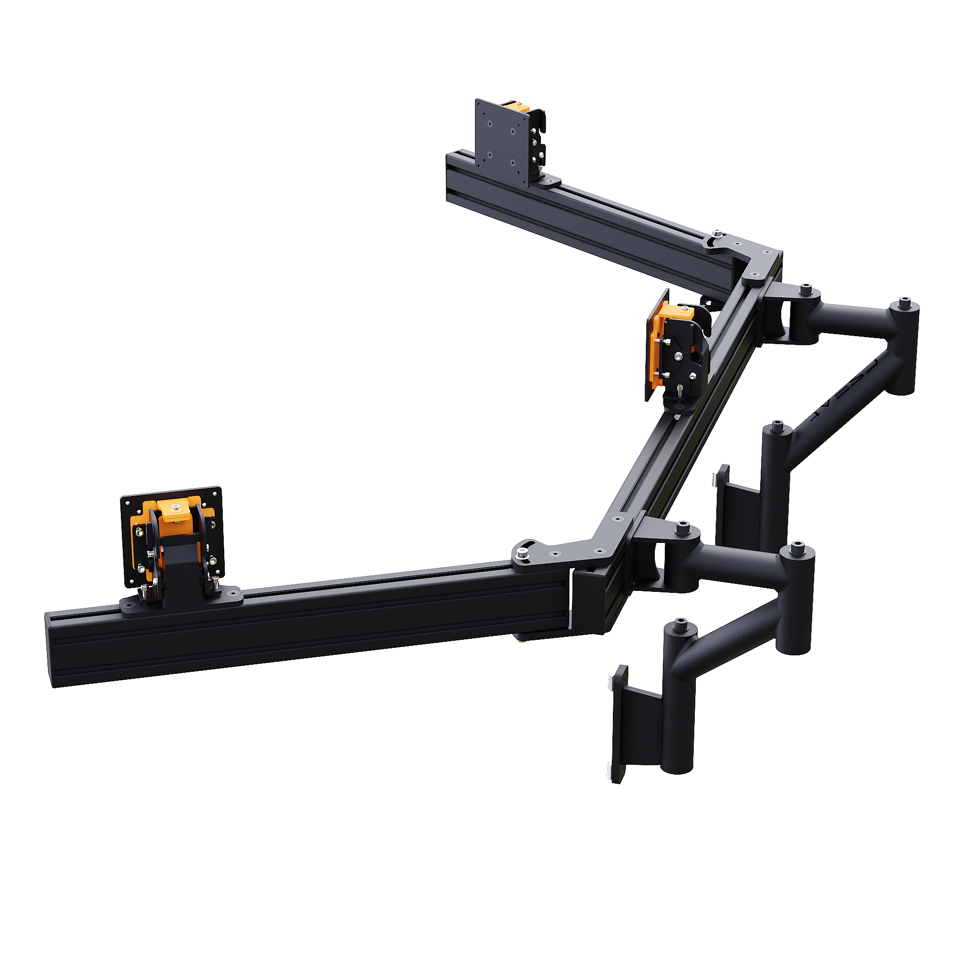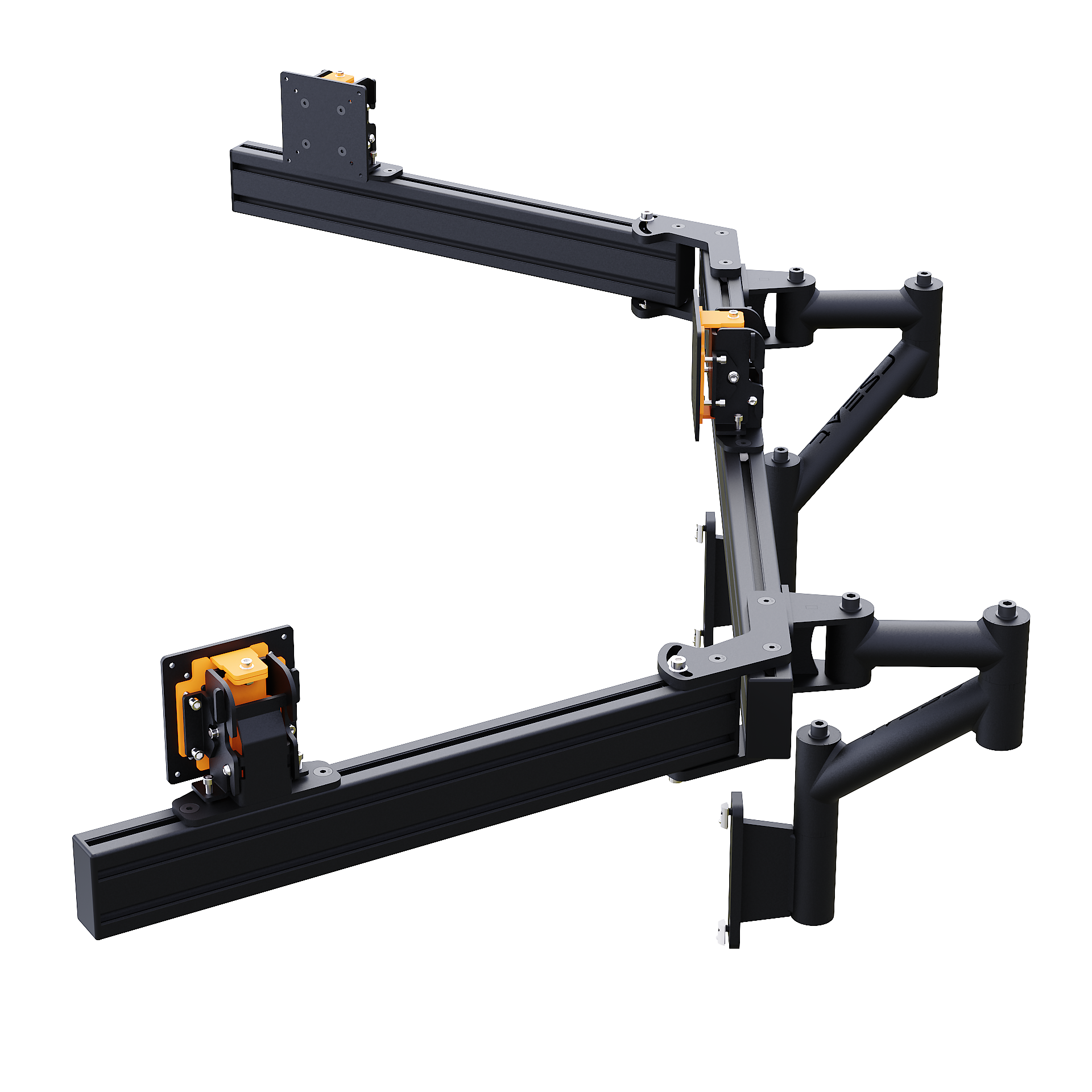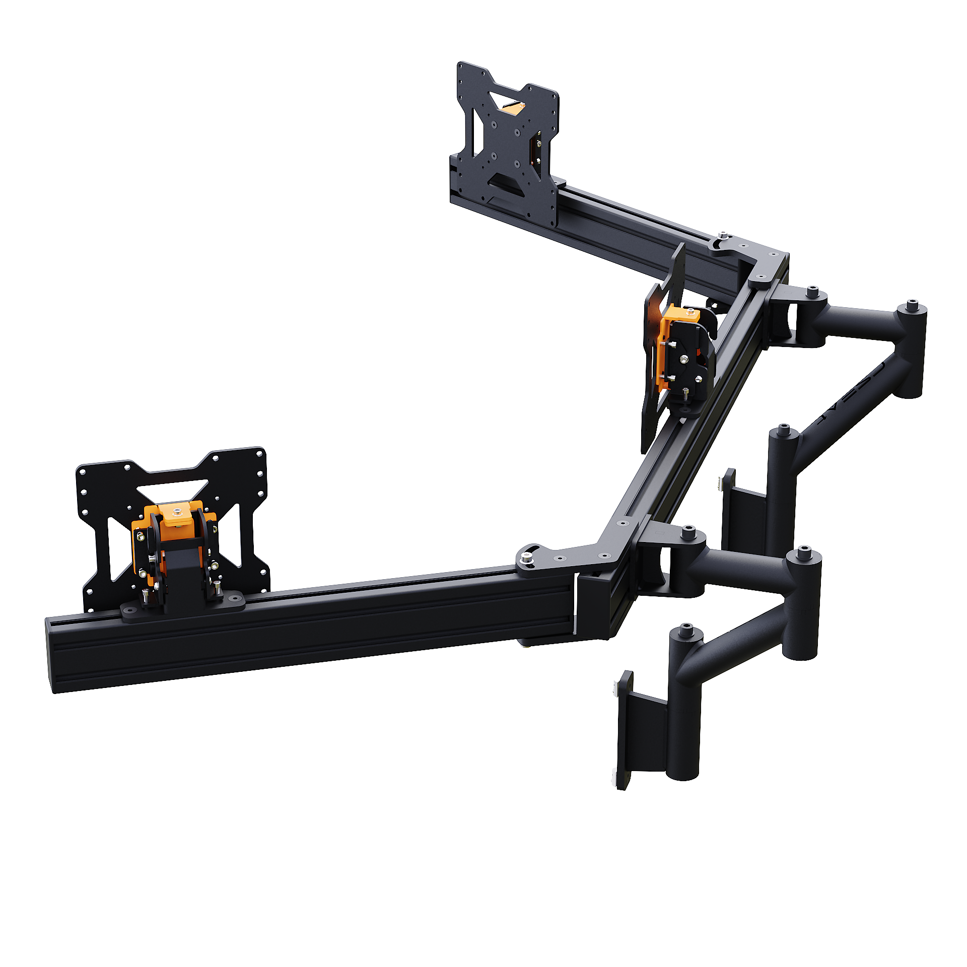The RSEAT A1-TX32 triple-screen integrated Monitor stand supports triple monitors up to 32 inches. It is all-way adjustable in height, front-back, and tilt position. The PRO VESA mount that comes with the stand supports fine adjustment in any direction. VESA support 75x75, 100x100, 150x150, 100x200, 200x200.